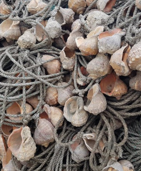 ▲ 소라껍데기를 이용한 낚시 ![]() º빈 소라 껍데기를 바닷속에 던져두면 주꾸미가 안으로 들어감 º일정시간 후 끌어올려 수확 |